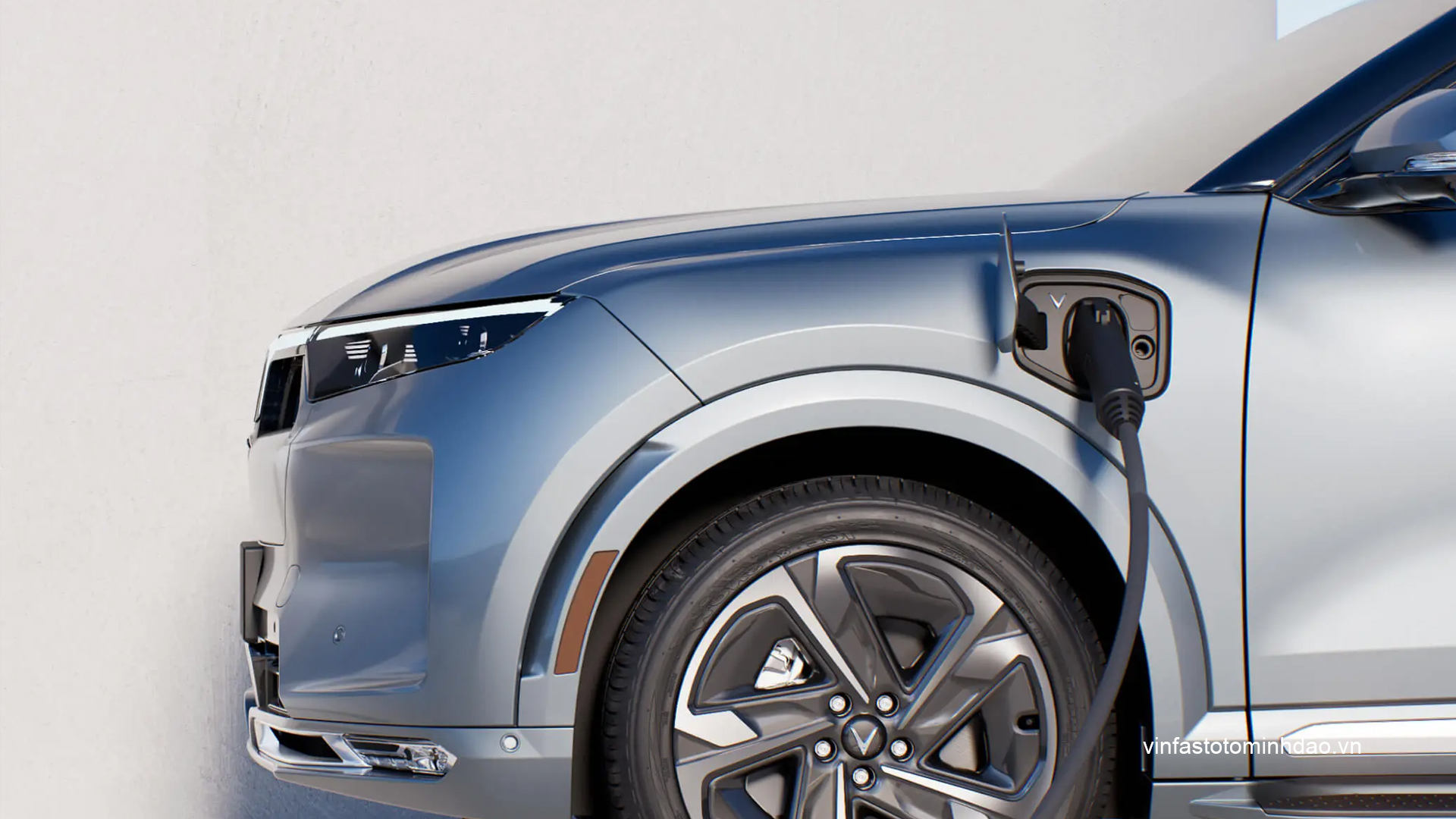 Ô tô điện VF 9 có 2 phiên bản pin là VF9 ECO và VF9 Plus cho khả năng di chuyển 485km và 680km sau mỗi lần sạc đầy theo mục tiêu dự kiến của VinFast. Tương ứng với đó là 2 chế độ sạc pin gồm sạc thông thường trong thời gian dưới 11 tiếng và chế độ sạc siêu nhanh (0-70%) dưới 26 phút. Những con số này cho thấy khả năng vận hành mạnh mẽ, ấn tượng của VinFast VF 9, cùng với đó là sự linh hoạt khi di chuyển trên mọi địa hình mà không phải mẫu xe nào cũng có được.